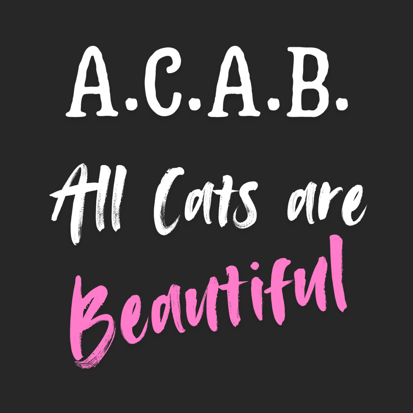 All Cats are Beautiful (alle Katzen sind wunderschön) spielt ACAB bewusst um: Es feiert Freiheit, Unabhängigkeit und Selbstbestimmung - inspiriert von Katzen, die sich nichts vorschreiben lassen. Das Motiv setzt ein queer-solidarisches Zeichen gegen Polizeigewalt und für respektvollen Widerstand mit Augenzwinkern.