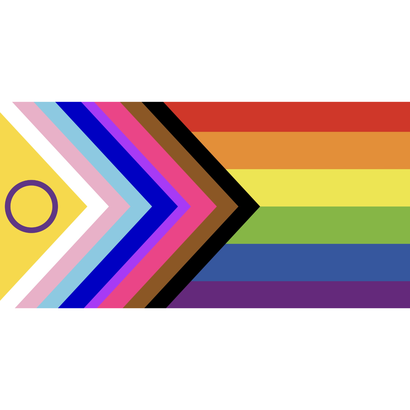 Um gegen bisexuelle Unsichtbarkeit zu kämpfen hat der Bi+ Pride Hamburg diese Flagge entworfen und so die Intersex Inklusive Progress Pride Flag um die drei Farben die Bisexual Pride Flag ergänzt.